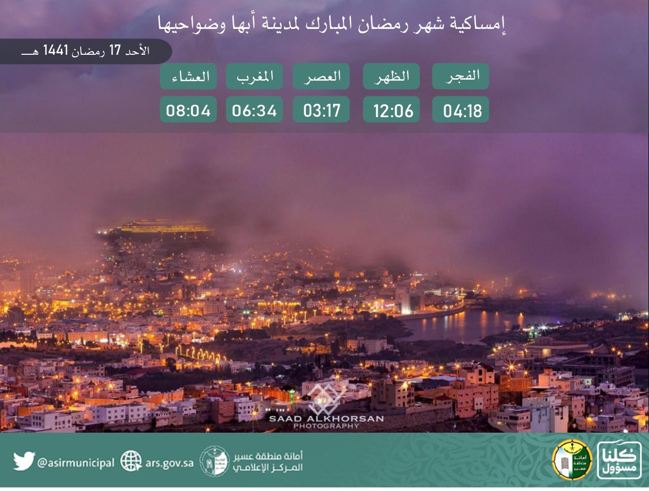 اذان الظهر في ابها إمساكية رمضان 1440 أبها.